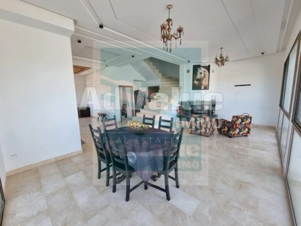 À vendre, une très belle villa de 450 m² sur deux niveaux avec piscine et jardin, construite sur un terrain de 850 m², située à l’entrée de la ville de Bouskoura.